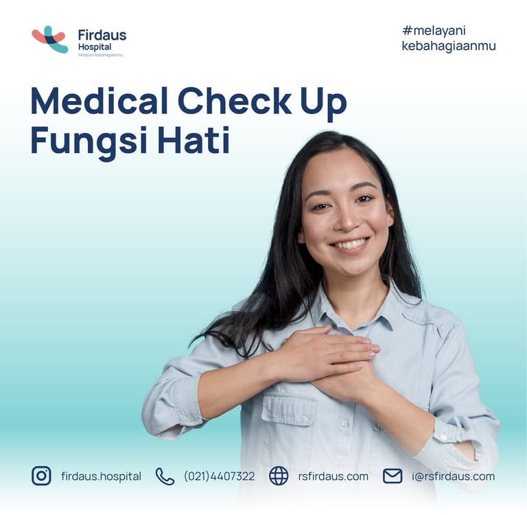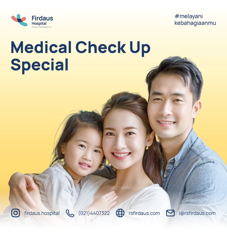 Medical Check Up adalah program pemeriksaan kesehatan yang komprehensif yang dirancang untuk membantu Anda memantau dan mengevaluasi kesehatan Anda secara menyeluruh. Medical Check Up mencakup serangkaian tes dan evaluasi medis yang dilakukan oleh tim profesional kesehatan dari Firdaus Hospital yang berpengalaman.